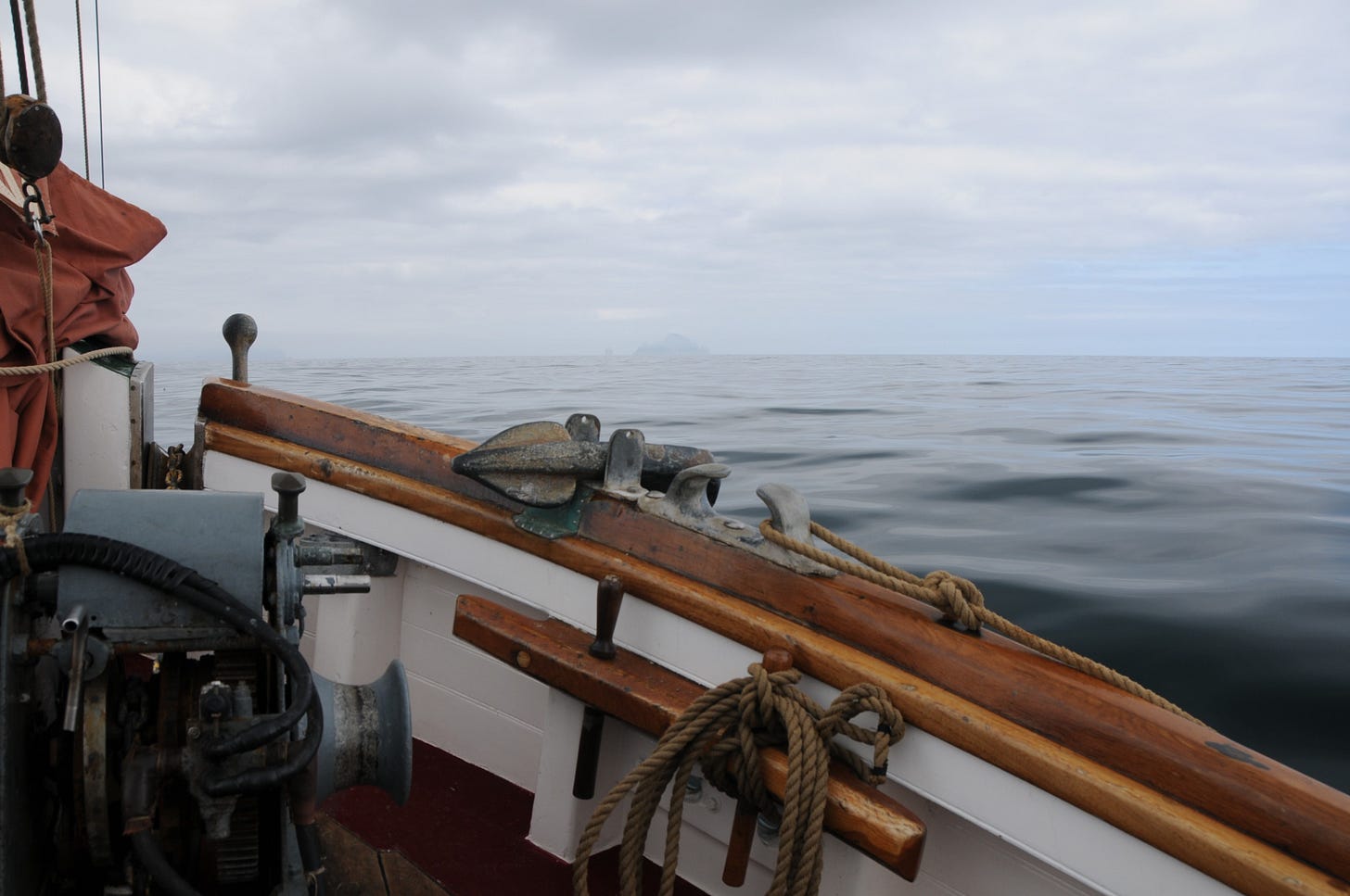 On to the Flemish Cap, a 12,000 square mile international fishing bank. Before the Cap, the Current splits right to pass through the Flemish Pass Basin next to Newfoundland and left to flow outside the cap in deep water over the Sohm Abyssal Plain. The nutrient-rich waters of the Labrador Current pass below nutrient-poor warmer waters transported north by the Gulf Stream. Heavy fog arises when the cold air of the land meets warm water. The layering of the northbound Gulf Stream over the southbound Labrador Current creates one of the richest fishing grounds in the world.